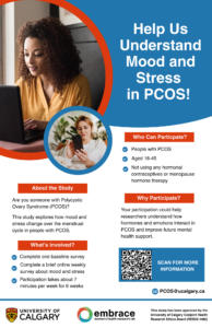 Our study looks at how mood and stress may change during the menstrual cycle for people with Polycystic Ovary Syndrome (PCOS). Learning how hormones affect emotional well-being can help improve mental health support and resources for the PCOS population.