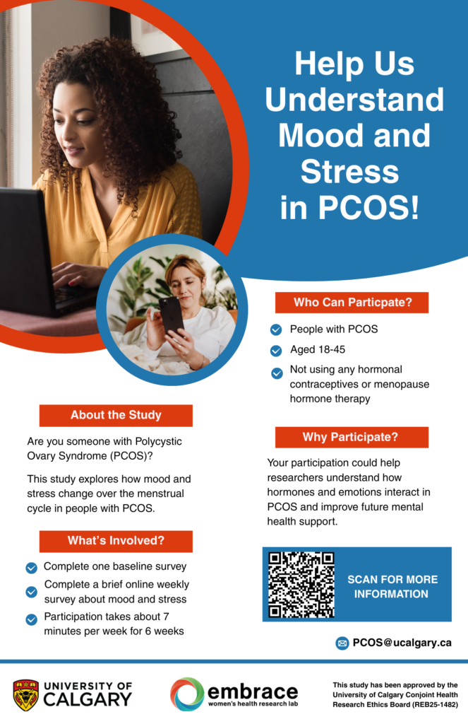 We are doing a study to learn more about how people with Polycystic Ovary Syndrome (PCOS) feel emotionally, and how these feeling might change during their menstrual cycle.